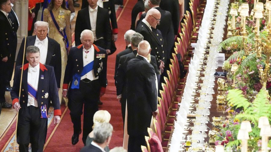 The dinner at St. George’s Hall will include 160 guests, and Trump is expected to sit between King Charles III and Kate, Princess of Wales, with Secretary of State Marco Rubio on the other side of the king.